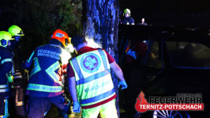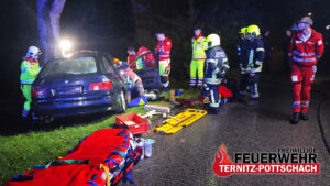 Am Einsatzort zeigte sich, dass ein Fahrzeug mit der Fahrerseite gegen einen Baum geprallt war. Der Lenker war dabei im Wagen eingeklemmt. Die Aufgabe der Feuerwehr Ternitz-Pottschach bestand darin, den Fahrer mithilfe von hydraulischem Spreizer aus dem Unfallfahrzeug zu befreien. Das Vorgehen erfolgte in enger Abstimmung mit dem Samariterbund Ternitz-Pottschach, der die medizinische Betreuung des Verunfallten übernahm.