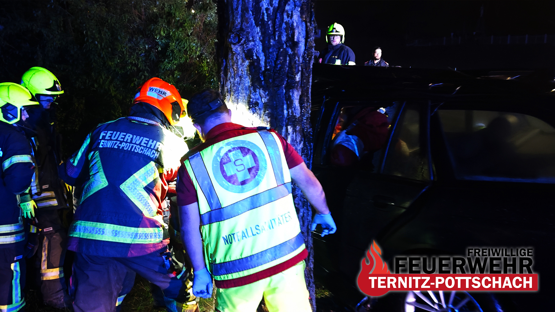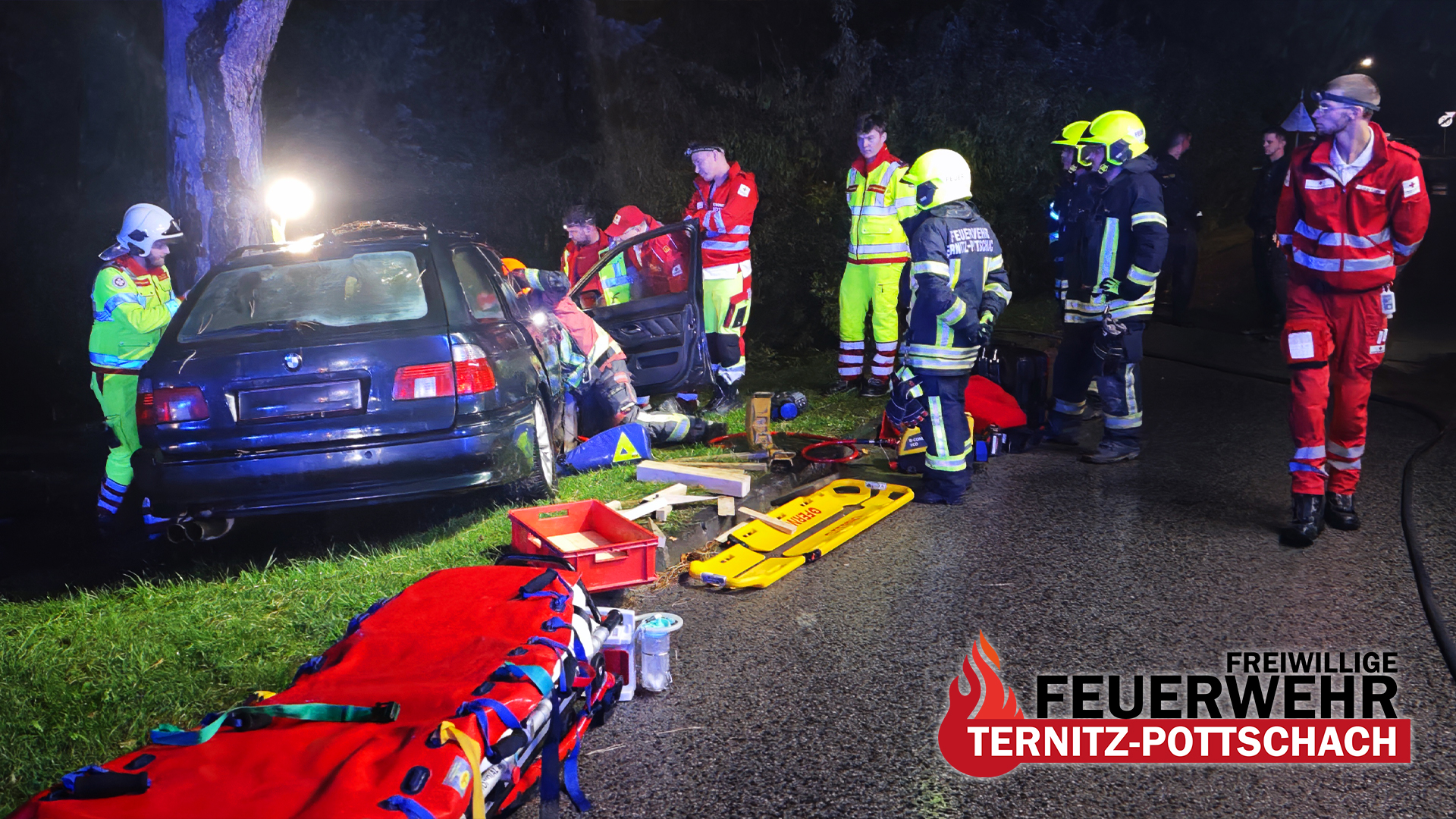 Am Mittwoch, den 24. September 2025, um 22:38 Uhr wurde die Freiwillige Feuerwehr Ternitz-Pottschach zu einem Verkehrsunfall mit Menschenrettung (T2) in die Franz-Samwald-Straße, Nähe Altstraße, alarmiert. Die Einsatzmeldung lautete: „PKW gegen Baum, eine Person eingeklemmt“.