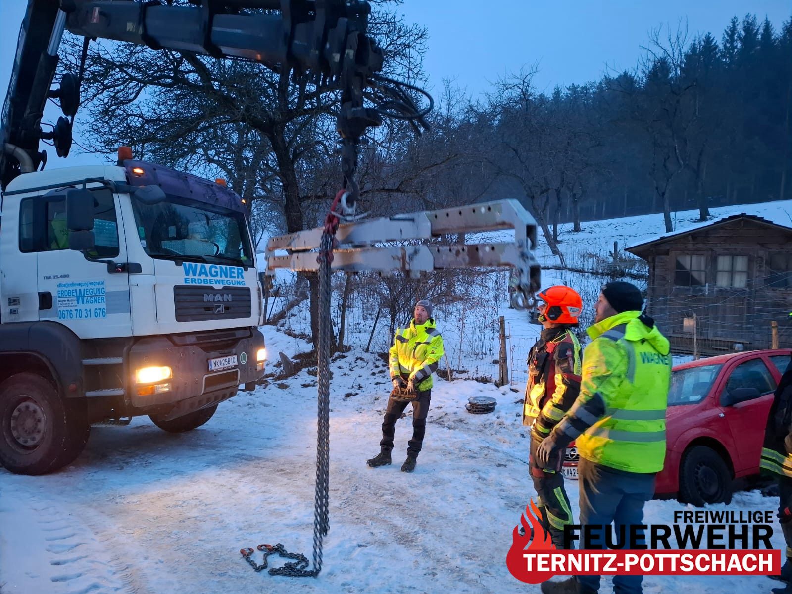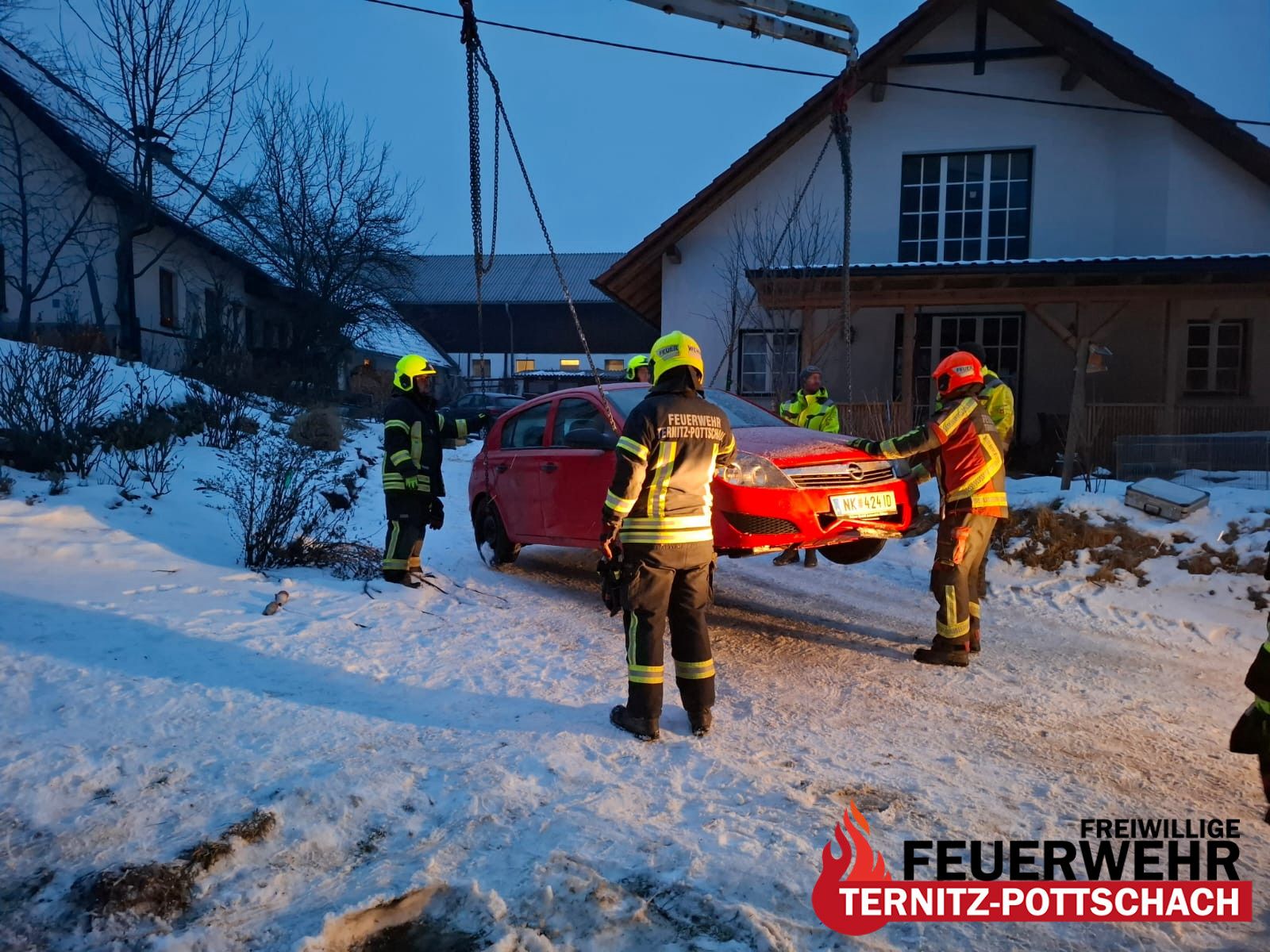 Am Samstag, dem 10.01.2026, wurde die Feuerwehr Ternitz-Pottschach um 16:09 Uhr zu einem T1 – Bergung eines PKW nach Bürg-Vöstenhof alarmiert.