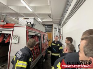 Die dritte Station fand im Lehrsaal statt. Dabei wurden die neuen Fahrzeugmappen vorgestellt, in denen sich einsatzrelevante Unterlagen und Karten befinden. Zusätzlich wurde die feuerwehreigene App „FFWEB“ besprochen und deren Funktionen erneut erklärt.