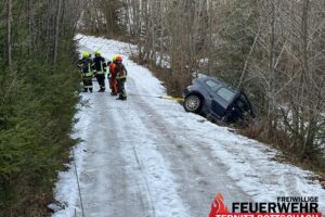 Am Einsatzort stellte sich heraus, dass ein Fahrzeug aufgrund der eisigen Fahrbahn von der Straße gerutscht war und in Schräglage im Seitengraben zum Stillstand kam.