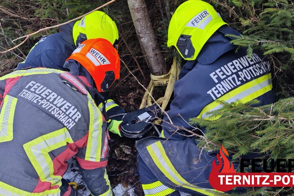 Die Feuerwehr Ternitz-Pottschach sicherte das Fahrzeug zunächst gegen weiteres Abrutschen. Im Anschluss wurde der PKW mittels Seilwinde des HLF 3 aus seiner misslichen Lage befreit.