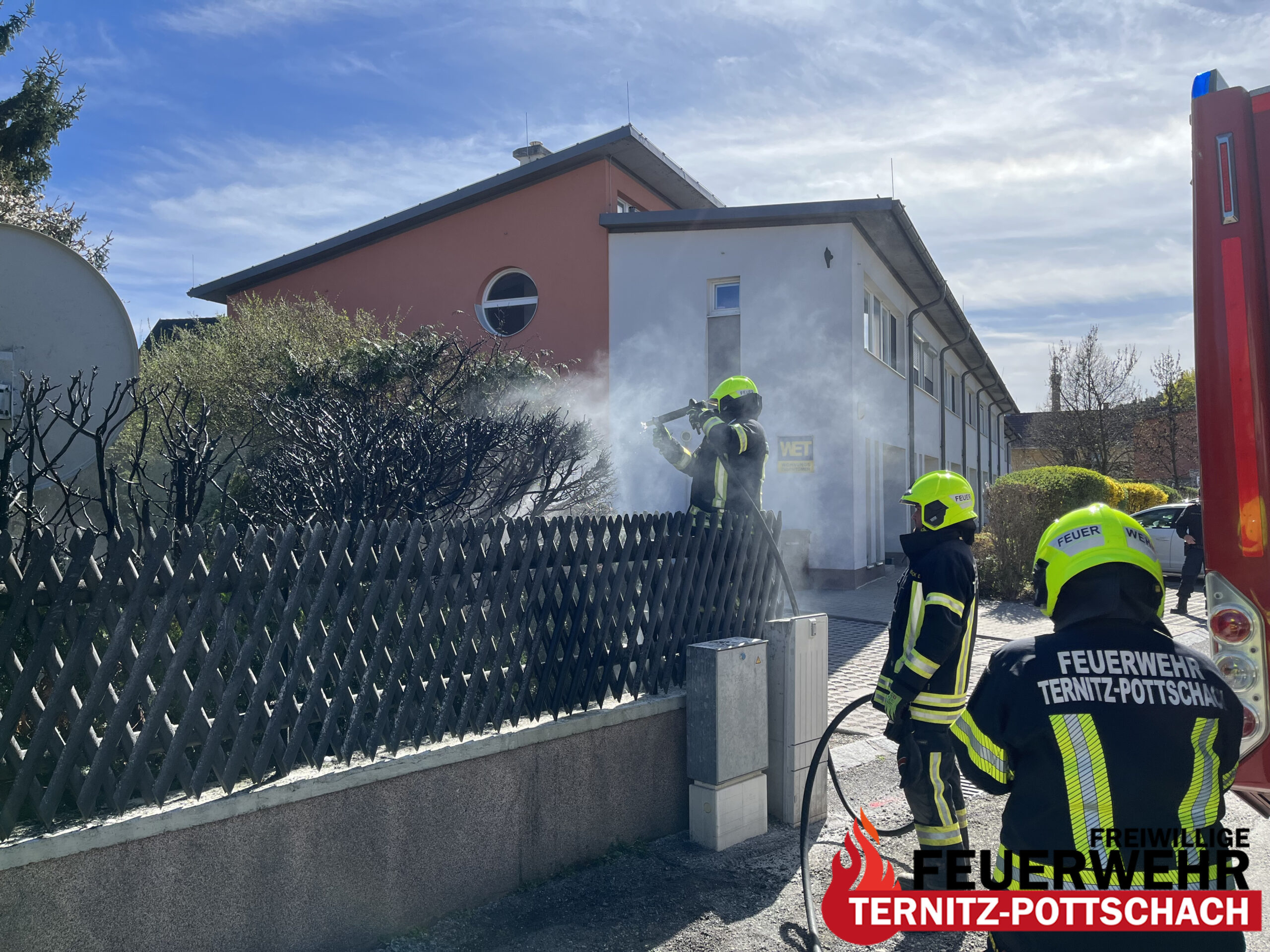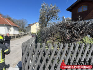 Am Donnerstag, dem 09.04.2026, wurde die Feuerwehr Ternitz-Pottschach um 15:10 Uhr zu einem B2 – Brand im Freien mit der Einsatzmeldung „Brand im Garten“ alarmiert.